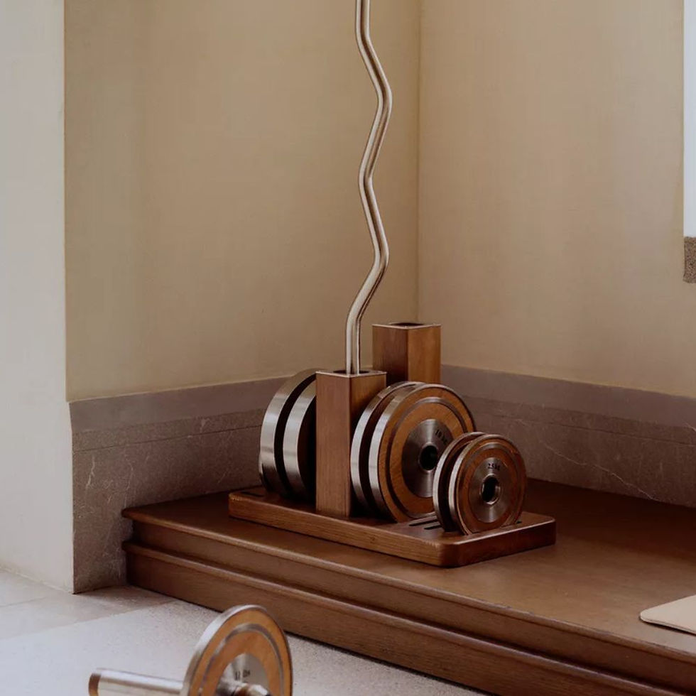Home fitness equipment can feel purely functional. Something practical, but rarely beautiful. This collection challenges that perception. Natural materials, soft tones, warm wood and thoughtful detailing transform everyday tools into objects that feel almost decorative. Dumbbells become sculptural forms. Wall equipment feels architectural. Even the smallest pieces carry a sense of intention.